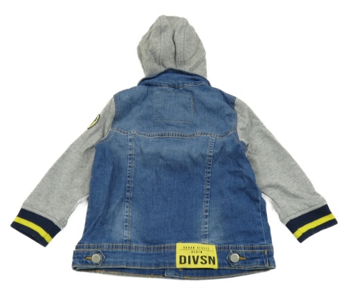 • Modro-sivá riflovo/tepláková bunda vyšúchaného vzhledu a nášivkou a odopínacíá kapucňou ORIGINAL BRAND
