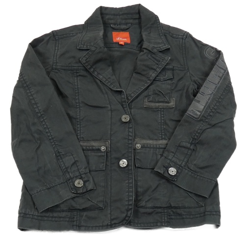Tmavosivý plátenný blejzer s nápismi S. Oliver