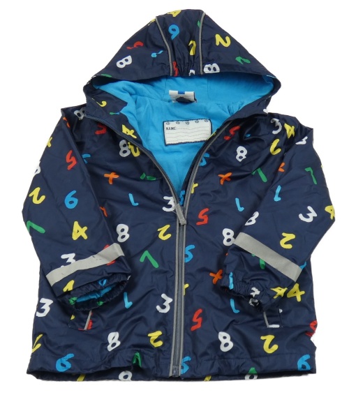 Tmavomodrá šušťáková jarná bunda s barevnými číslicemi a kapucňou Topolino