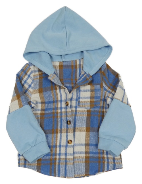 Světlemodro-smetanovo-okrová kockovaná košeľová bunda s kapucňou Shein