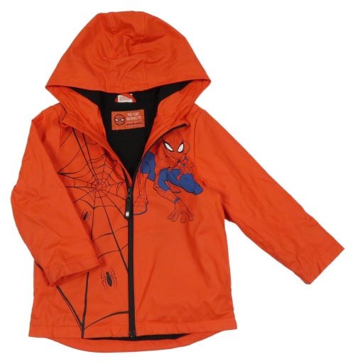 Červená nepromokavá jarná bunda so Spidermanem a kapucňou Marvel