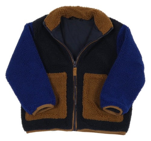Tmavomodro-safírovo-hnedá huňatá podšitá bunda Next