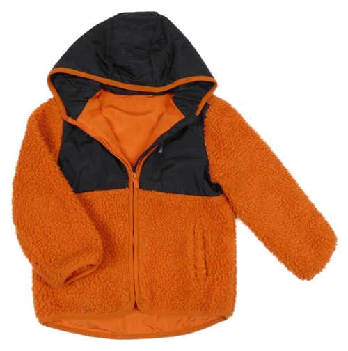 Oranžovo-čierna huňato/šusťáková jarná zateplená bunda s kapucňou Dunnes