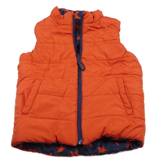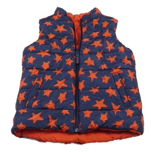 Tmavomdrá šušťáková prešívaná zateplená obojstranná vesta s hviezdičkami