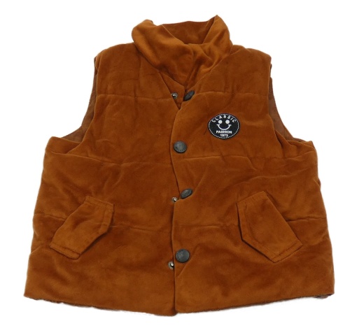 Hrdzavá plyšová zateplená vesta s nášivkou so smajlíkom