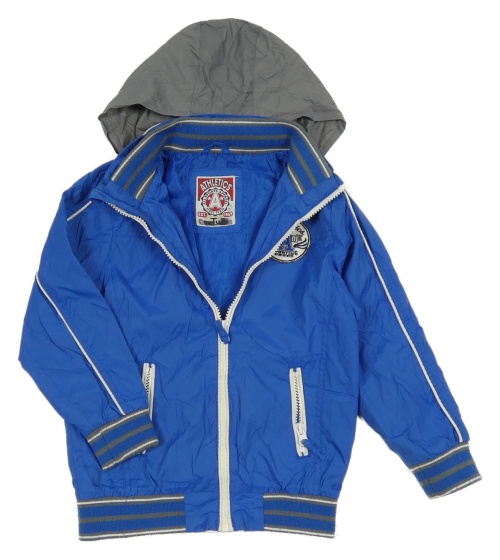 Modrá šušťáková jarná bunda s ukrývací kapucňou Tu