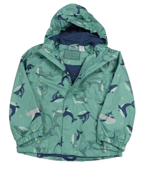 Zelená šušťáková jesenná bunda s velrybami a kapucňou