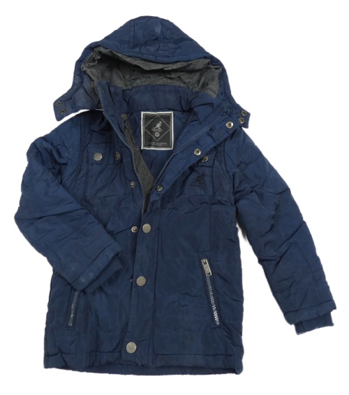 Tmavomodrá šušťáková zateplená bunda s kapucňou Kangol
