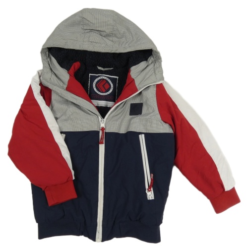 Nové - Sivo-červeno-tmavomodrá šušťáková zimná bunda s kapucňou Next