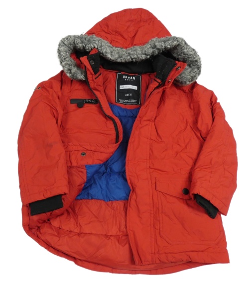 Červená šušťáková zimná bunda s kapucňou s kožešinou urban