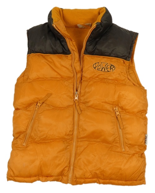 Oranžovo-hnedá šušťáková prešívaná zateplená vesta s nápisom
