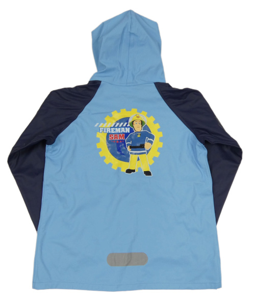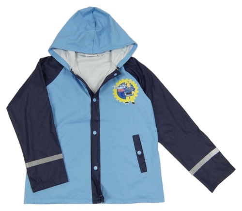 Modro-tmavomodrá nepromokavá bunda s požárníkem Samem a kapucňou
