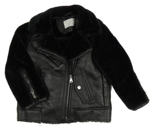 Čierny koženkový krivák s kožušinovymi rukávy Zara