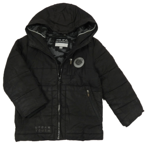 Čierna kockovaná šušťáková zimná bunda s nášivkou a kapucňou F&F