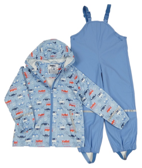 2set - svetlomodrá nepromokavá bunda s autami a kapucí + na traké nohavice