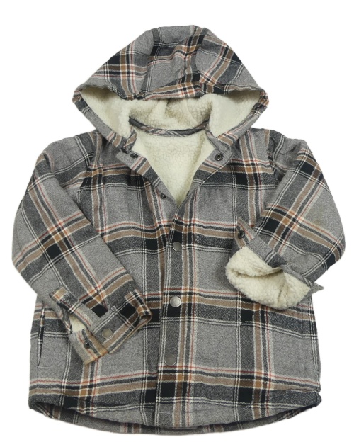 Sivo-čierno-hnedá kockovaná zateplená košeľová bunda s kapucňou Next
