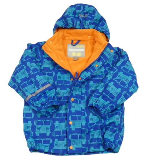 Modro-tyrkysová nepromokavá zateplená bunda s autami a kapucňou