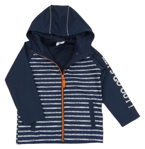 Tmavomodrá šušťáková jesenná bunda s prúžkami a kapucňou Topolino