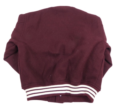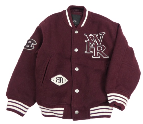 Tmavovínový flaušový zateplený bomber s písmenky a pruhmi RIVER ISLAND