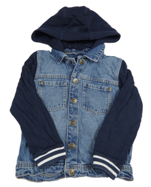 • Modrá rifľová bunda s tmavomodrými teplákovými rukávy s pruhmi a odopínacíá kapucňou Next