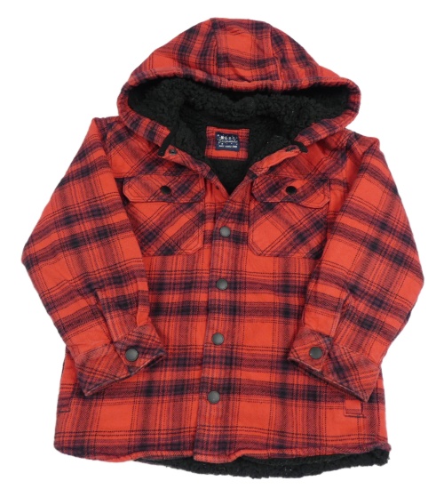 Červeno-tmavomodrá kockovaná zateplená košeľová bunda s kapucňou Next