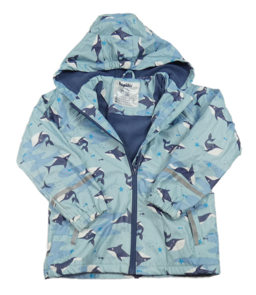 Svetlomodrá nepromokavá jesenná bunda so žralokmi a kapucňou Lupilu