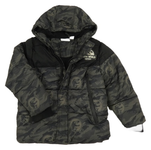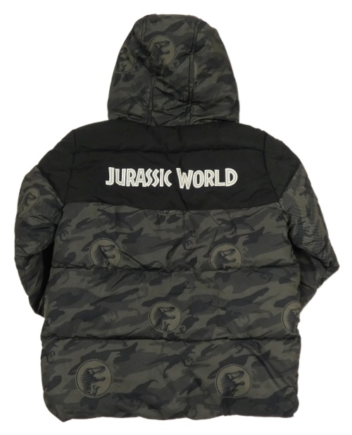 Čierno-kaki-vzorovaná šušťáková zimná bunda s kapucí - Jurský svět
