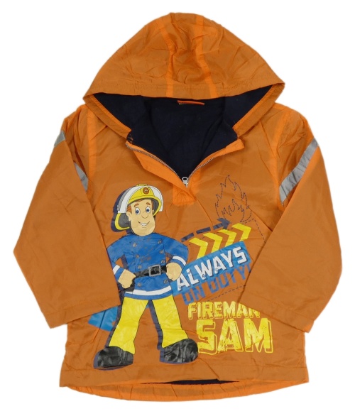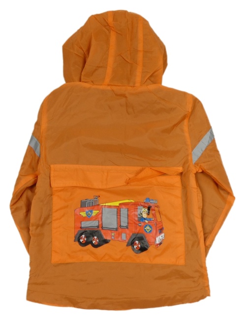 Oranžová šušťáková jesenná bunda s Hasičem Samem a kapucňou