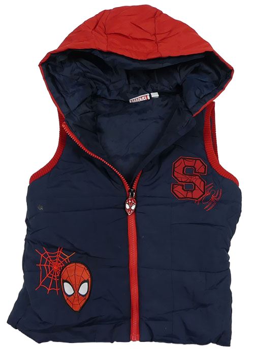 • Tmavomodro-červená prešívaná šušťáková zateplená vesta so Spider-manem a kapucňou MARVEL
