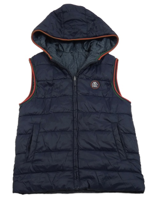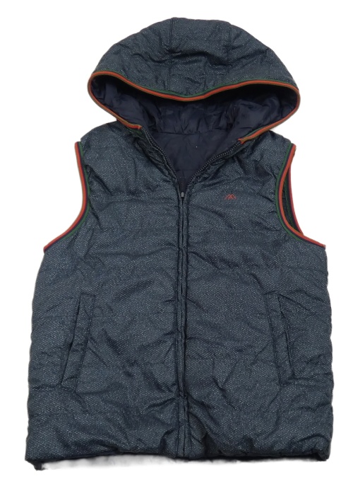 Tmavomodrá šušťáková zateplená obojstranná vesta s nášivkou a kapucňou Mayoral