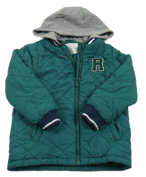 • Zelená šušťáková zateplená prešívaná bunda s písmenem a teplákovou kapucňou Primark