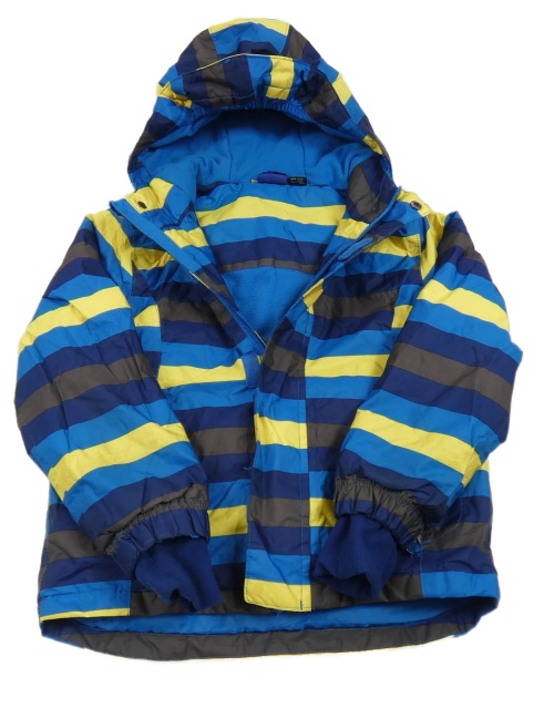 Tmavomodro-žltá pruhovaná šušťáková zimná funkčná bunda s kapucňou Lupilu