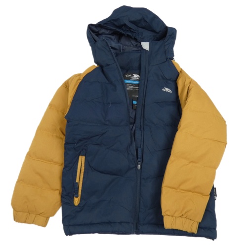 Tmavomodro-medová šušťáková zimná funkčná bunda s kapucňou Trespass