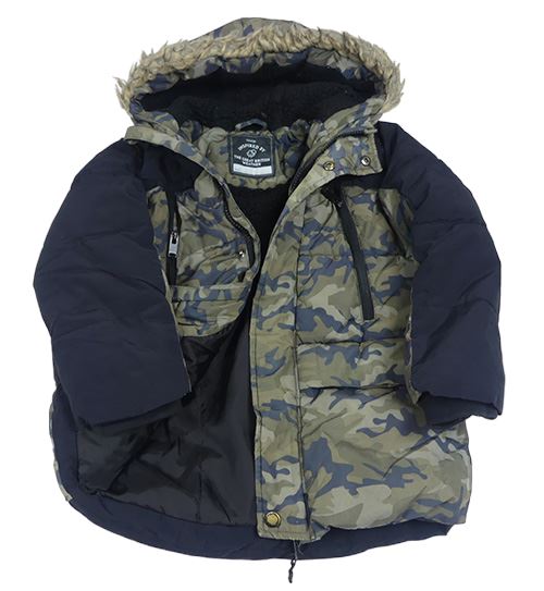 Army-čená prešívaná šušťáková zimná bunda s kapucňou s kožešinou George