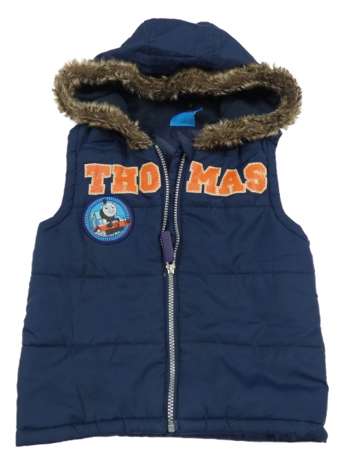 Tmavomodrá šušťáková zateplená vesta s Thomasem a kapucňou