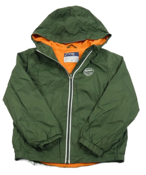 Tmavozelená šušťáková jarná bunda s nápisom a kapucňou