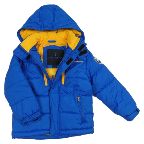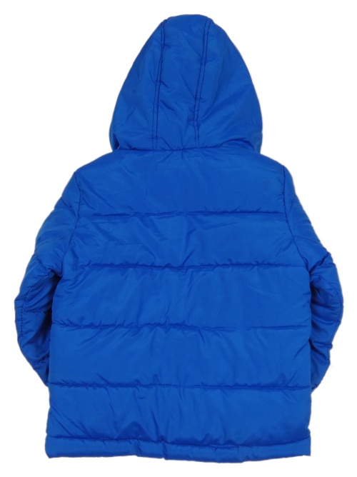 Modrá šušťáková zimná bunda s nápisom a kapucňou