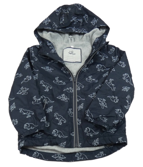 Tmavomodrá šušťáková jarná bunda s dinosaurami a kapucňou Topolino