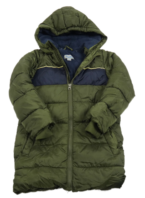 Kaki-tmavomodrý šušťákový zimný kabát s kapucňou Impidimpi
