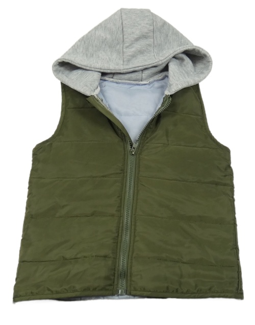 Khaki šušťáková zateplená vesta s teplákovou kapucňou Shein