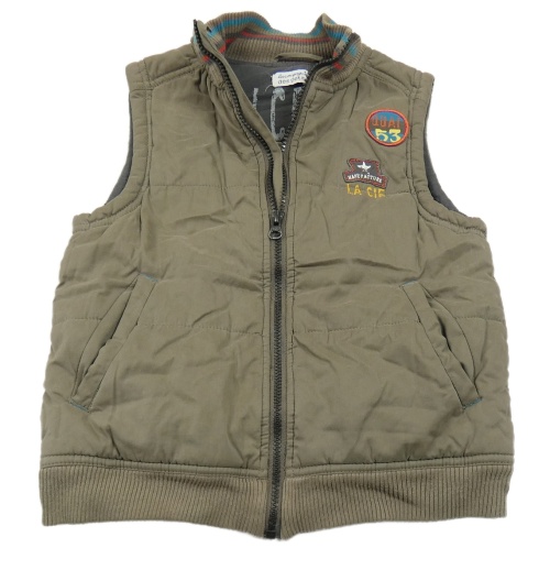 Khakišedá prešívaná šušťáková zateplená vesta s nášivkami la compagnie des petits