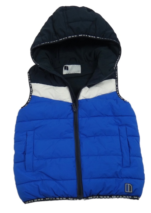 Tmavomodro-bielo-modrá šušťáková zateplená vesta s kapucňou Next