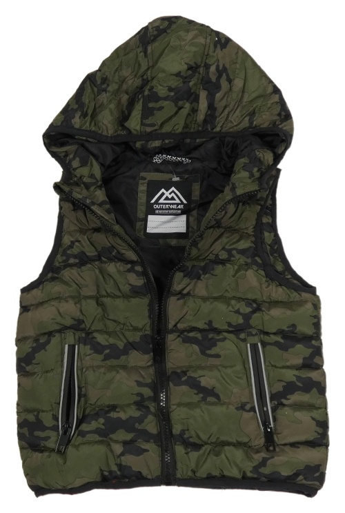 Khaki army šušťáková zateplená vesta s kapucňou Matalan