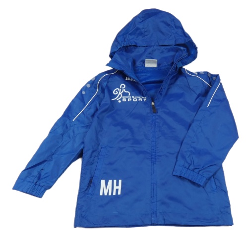 Kobaltově modrá šušťáková športová bunda s nápisom a kapucňou Jako