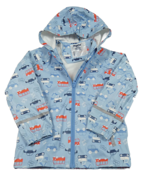 Svetlomodrá nepromokavá bunda s autami a kapucňou Lupilu