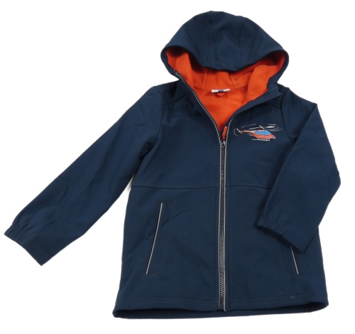 Tmavomodrá sofhshellová bunda s vrtuľníkom a kapucňou Topolino