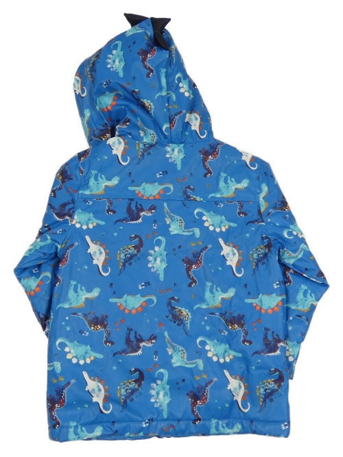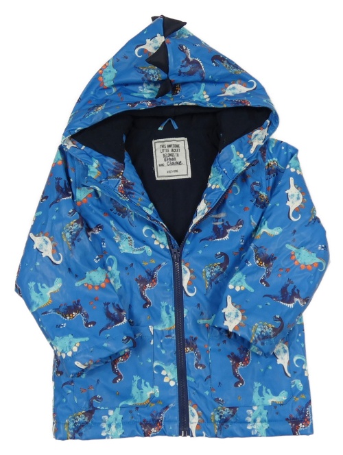 Modrá nepromokavá zateplená bunda s dinosaurami a kapucňou Matalan