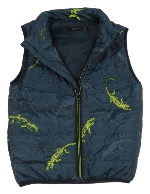 Tmavomodrá melírovaná šušťáková zateplená vesta s ještěrkami Name it