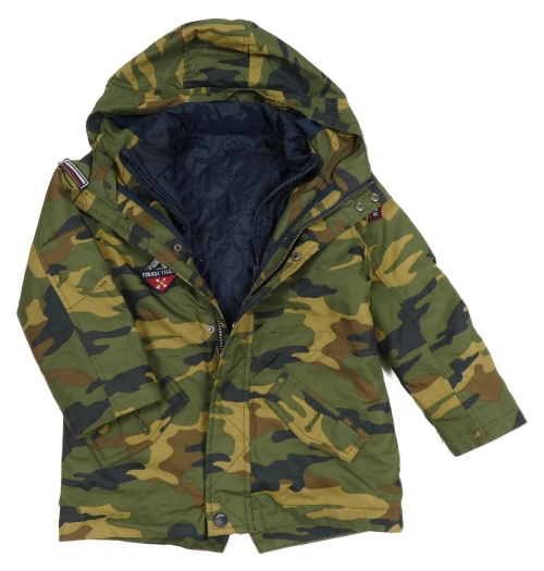 • 3v1 - Khaki army šušťáková celoroční bunda s nášivkami a kapucí + tmavomodrá šušťáková prešívaná bunda C&A