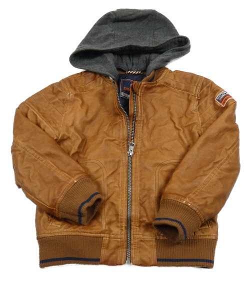 Hnědý koženkový zateplený bomber s odopínacíá kapucňou C&A